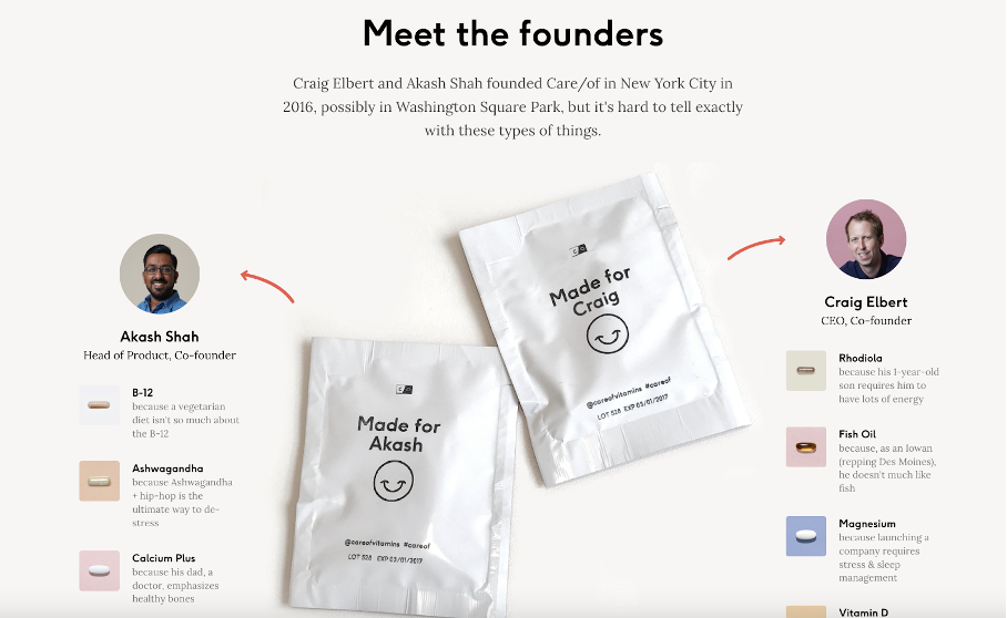 Care/of started as an ecommerce website that sold vitamins to consumers over the internet. But what makes their site stand out is the way they help each user pick out vitamin supplements to suit their unique needs.