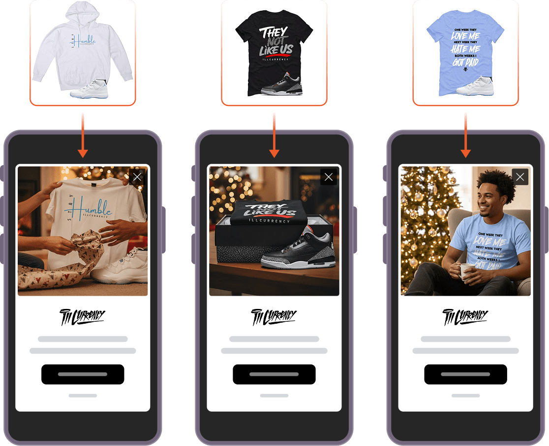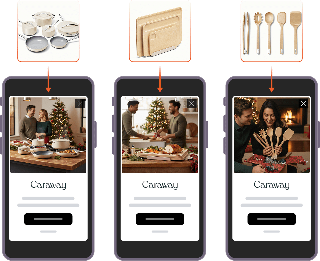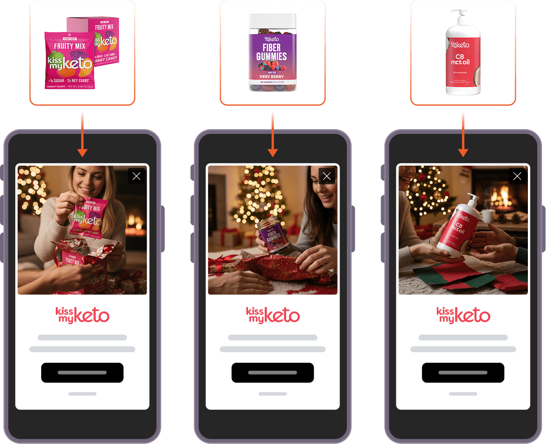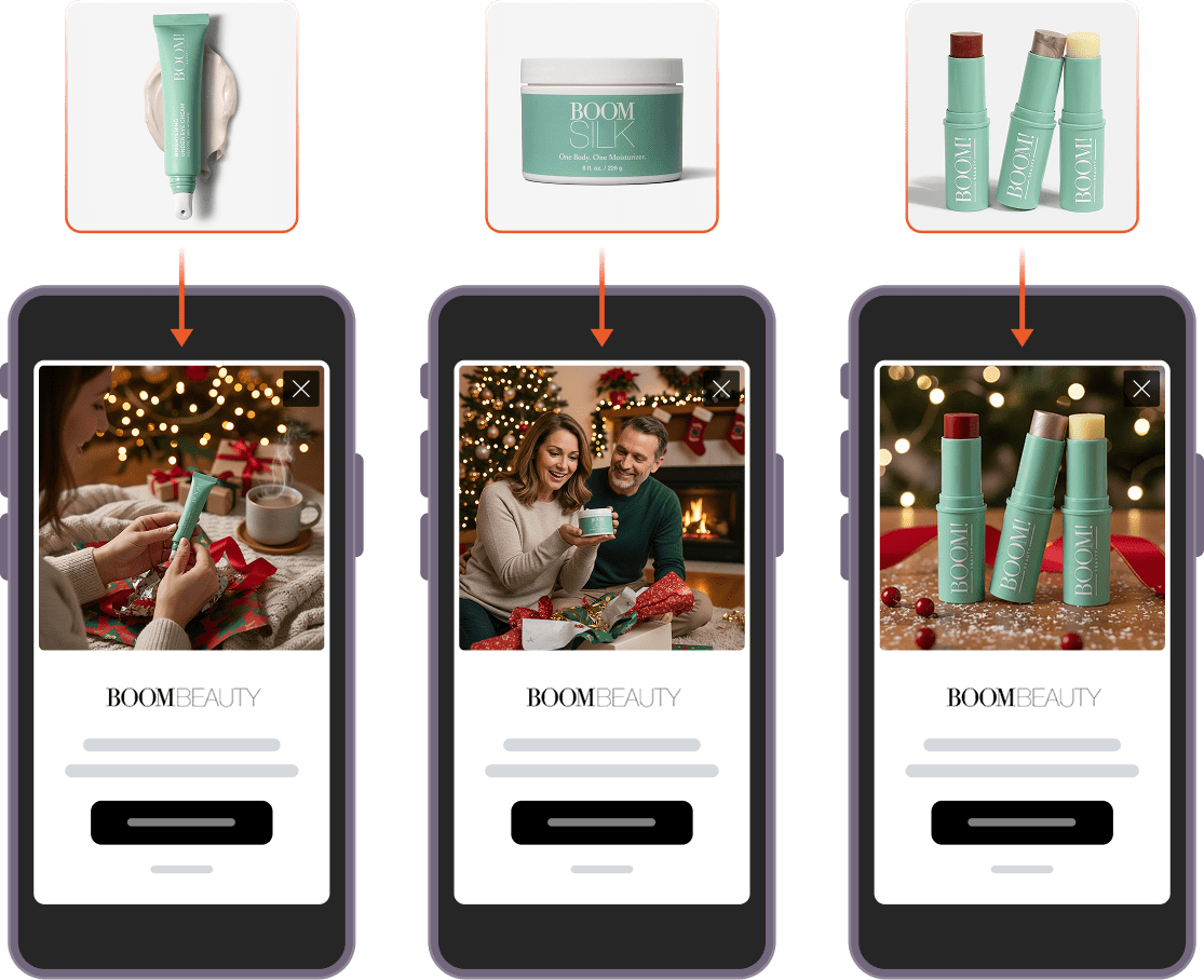 Your everyday product shots get a festive AI makeover, creating personalized Christmas popups.