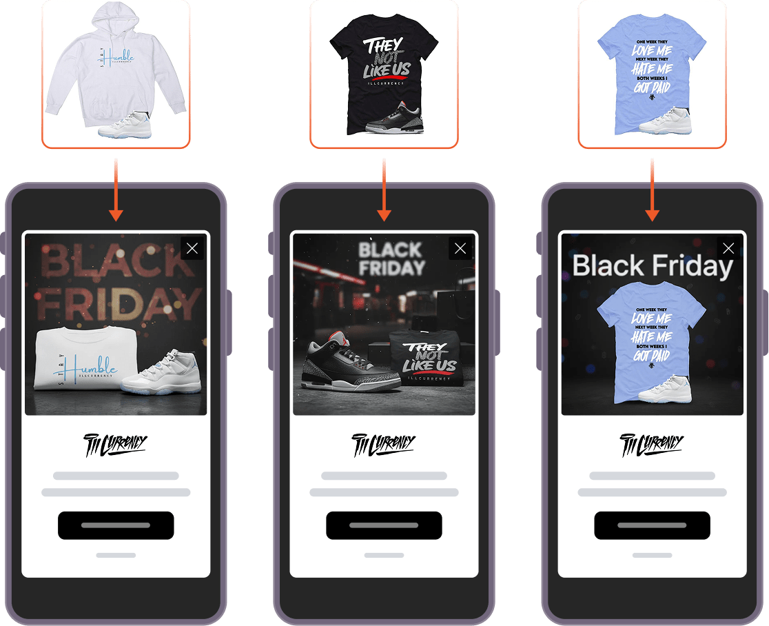 Transform your plain fashion product shots into bold Black Friday visuals that grab attention for your popups.