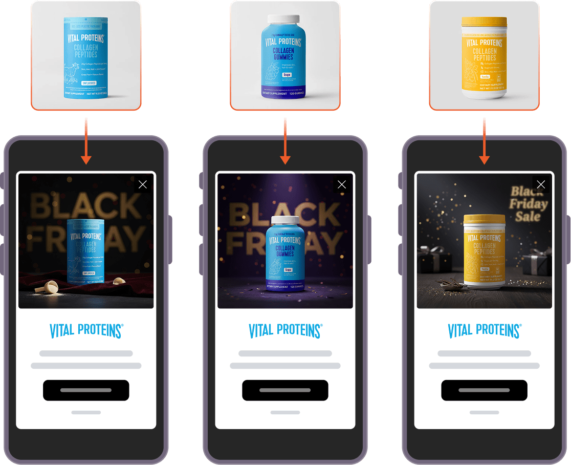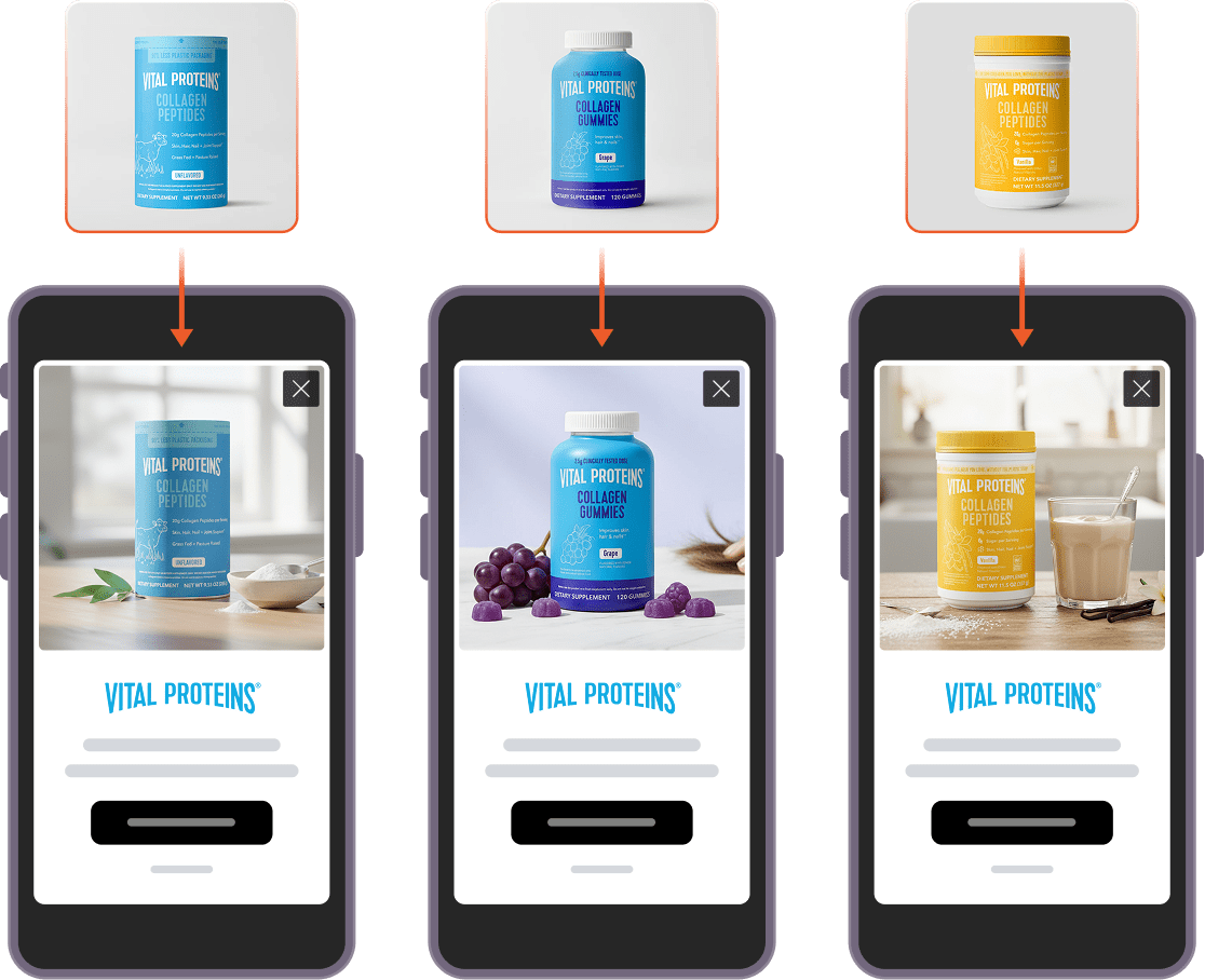 Turn simple product shots into motivating wellness visuals that power personalized popups.