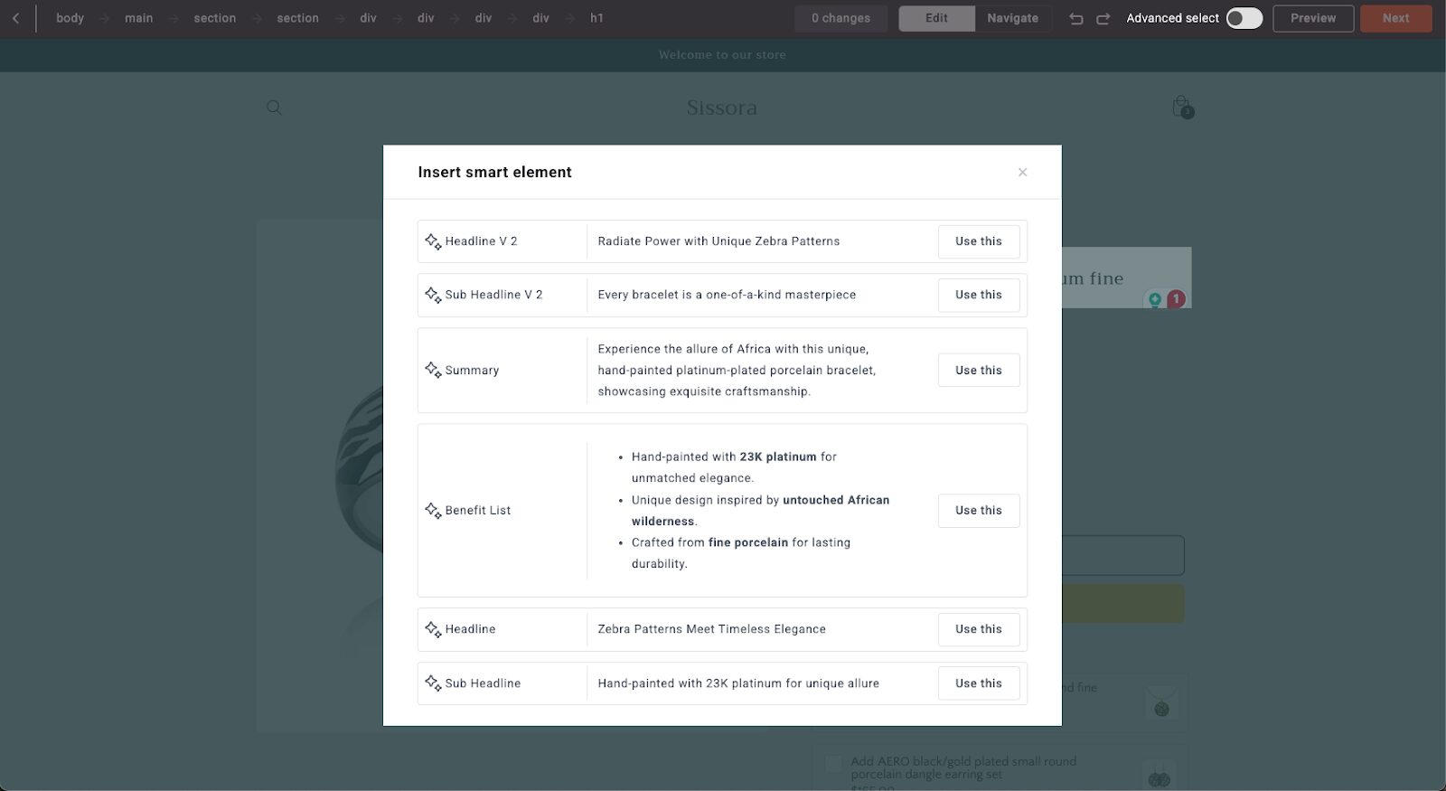 This means you can maintain consistency across your site, reflect your brand voice, and quickly launch new products without writing every word from scratch.