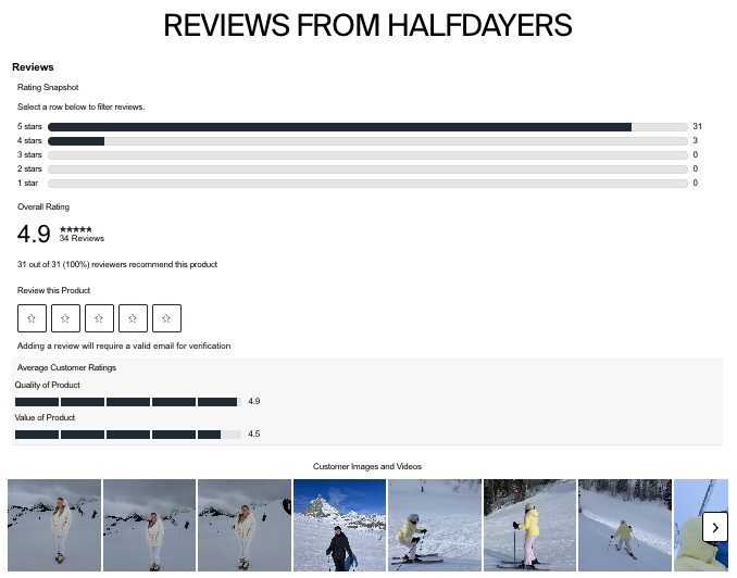 Halfdays doesn’t just design for women; they design with them, leveraging the expertise of founder and Olympic skier Kiley McKinnon to ensure that every product is tailored to fit both the unique needs of women and their sense of style.