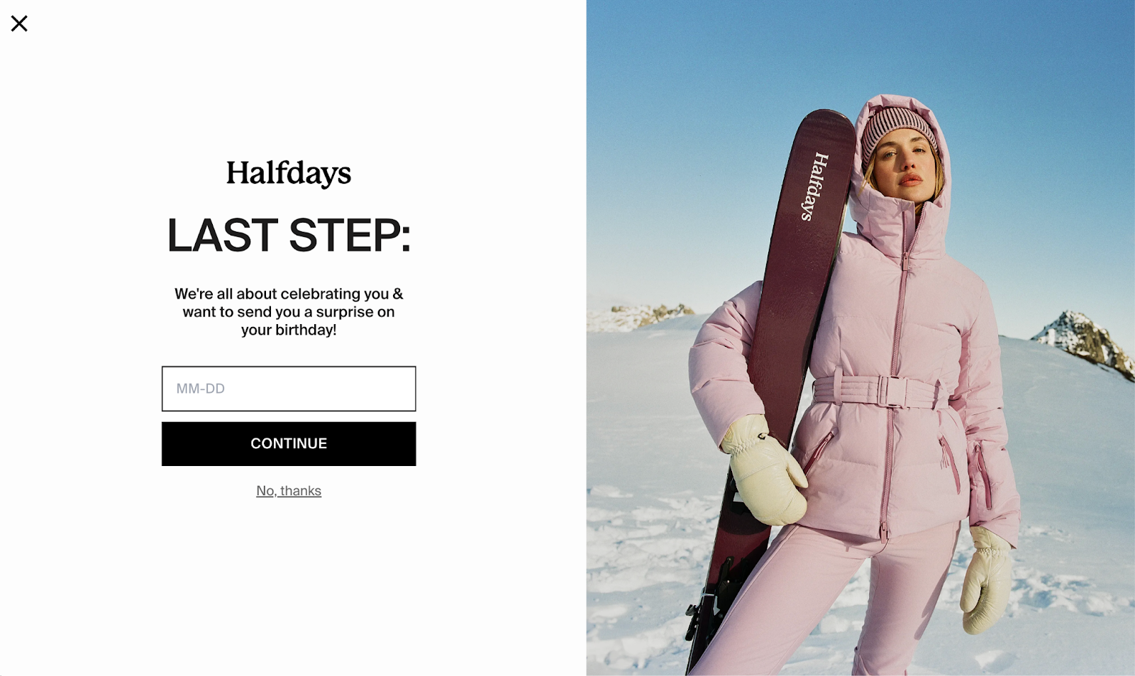 Asking for a birthday is a subtle yet powerful lifecycle marketing tactic. It enables automated birthday campaigns, creates emotionally resonant touchpoints, and allows Halfdays to engage customers in non-promotional moments that strengthen long-term brand affinity.
