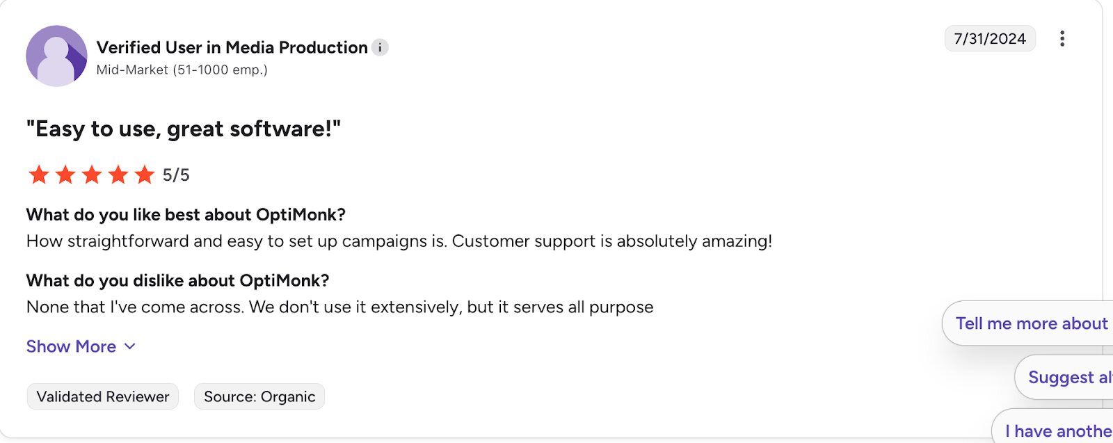 If you’re an SMB, ecommerce brand, or marketing agency looking for the best popup tool that delivers fast results, then yes, OptiMonk is absolutely worth it.