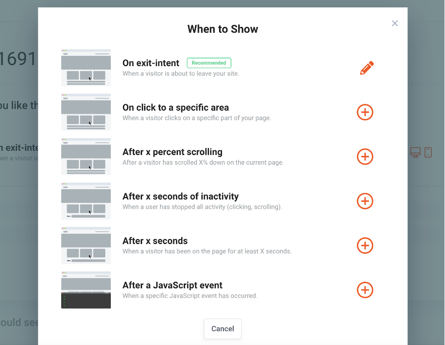 So, if you’re looking to use an exit-intent popup, you’ll only have a few options to choose from.