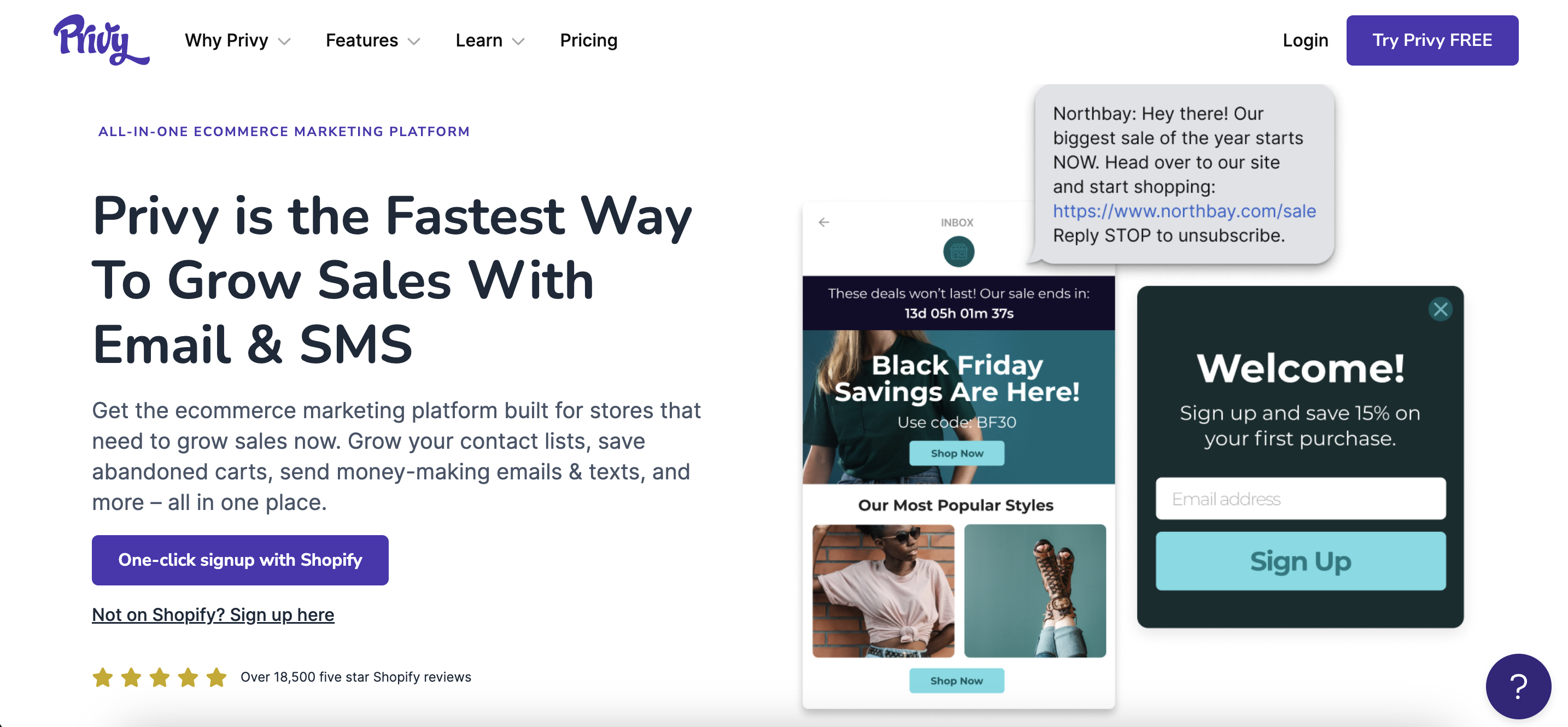 Free trial available, paid plans start at $24/month (popups) and $30/month (email & SMS)