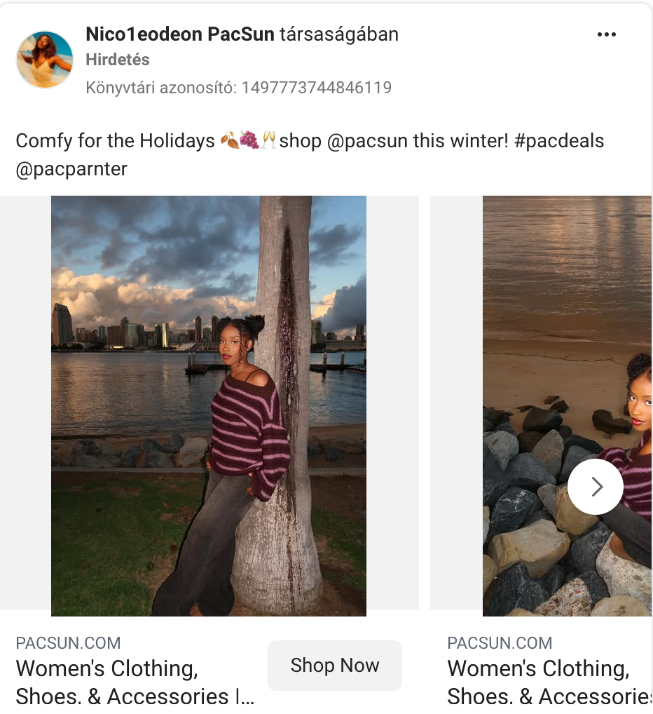 Alongside creator content, PacSun also runs simple seasonal ads featuring clear product photos and straightforward styling.