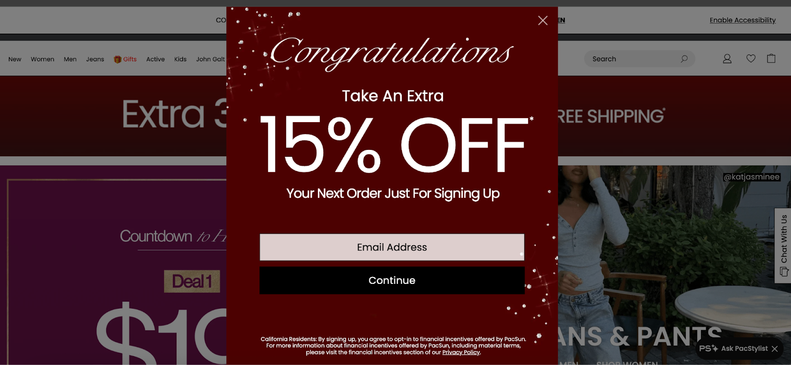 PacSun’s CRO strategy centers on list building, urgency, and personalization, using a series of carefully timed onsite triggers to keep visitors moving toward conversion.