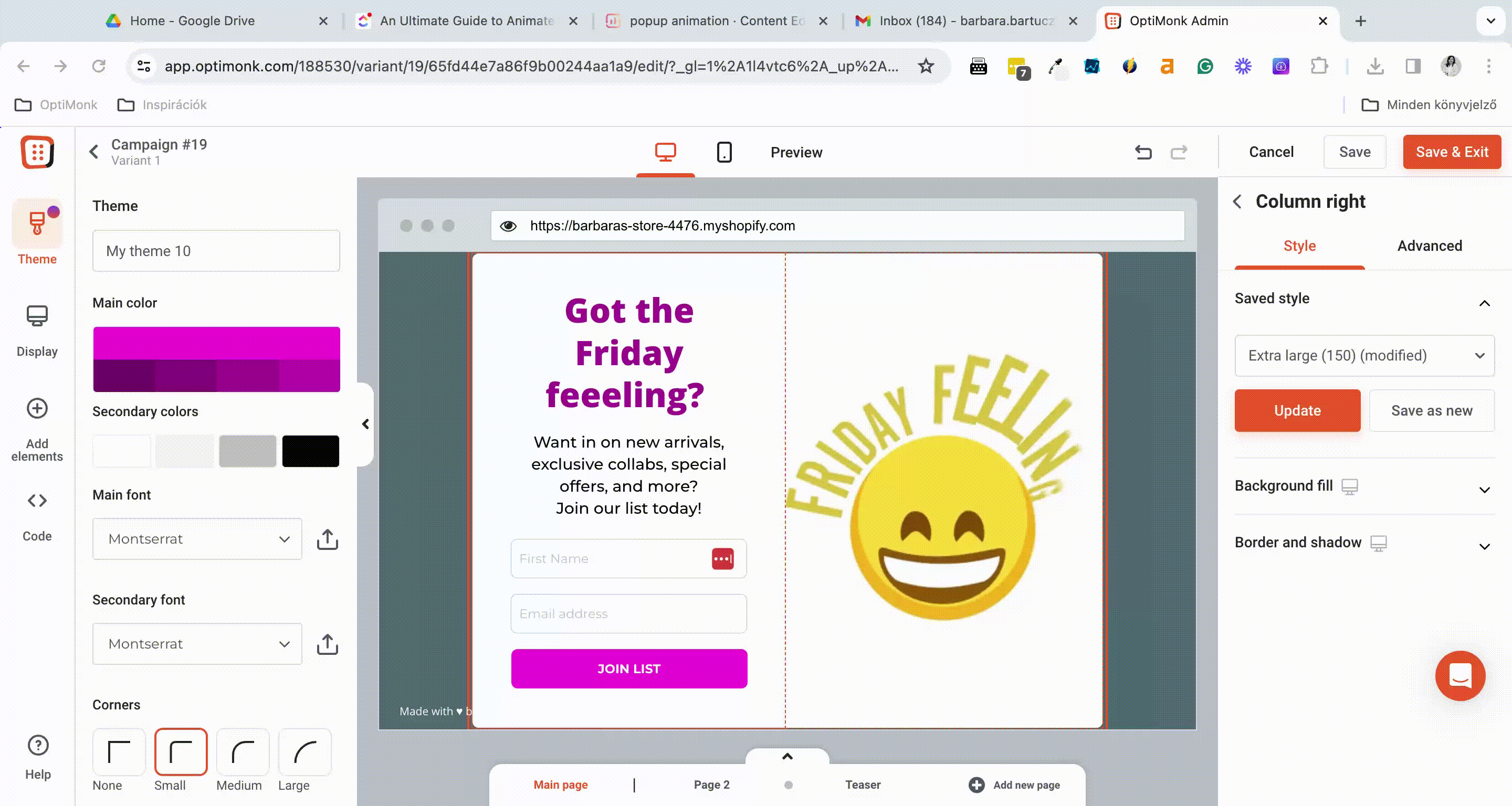 OptiMonk’s drag-and-drop editor makes it easy to modify text, images, colors, and fonts.