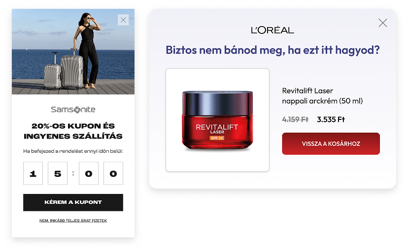 Egy jól időzített popup képes visszahozni a bizonytalan vásárlókat. Mutasd meg, mit hagynának hátra – és adj okot a visszatérésre.