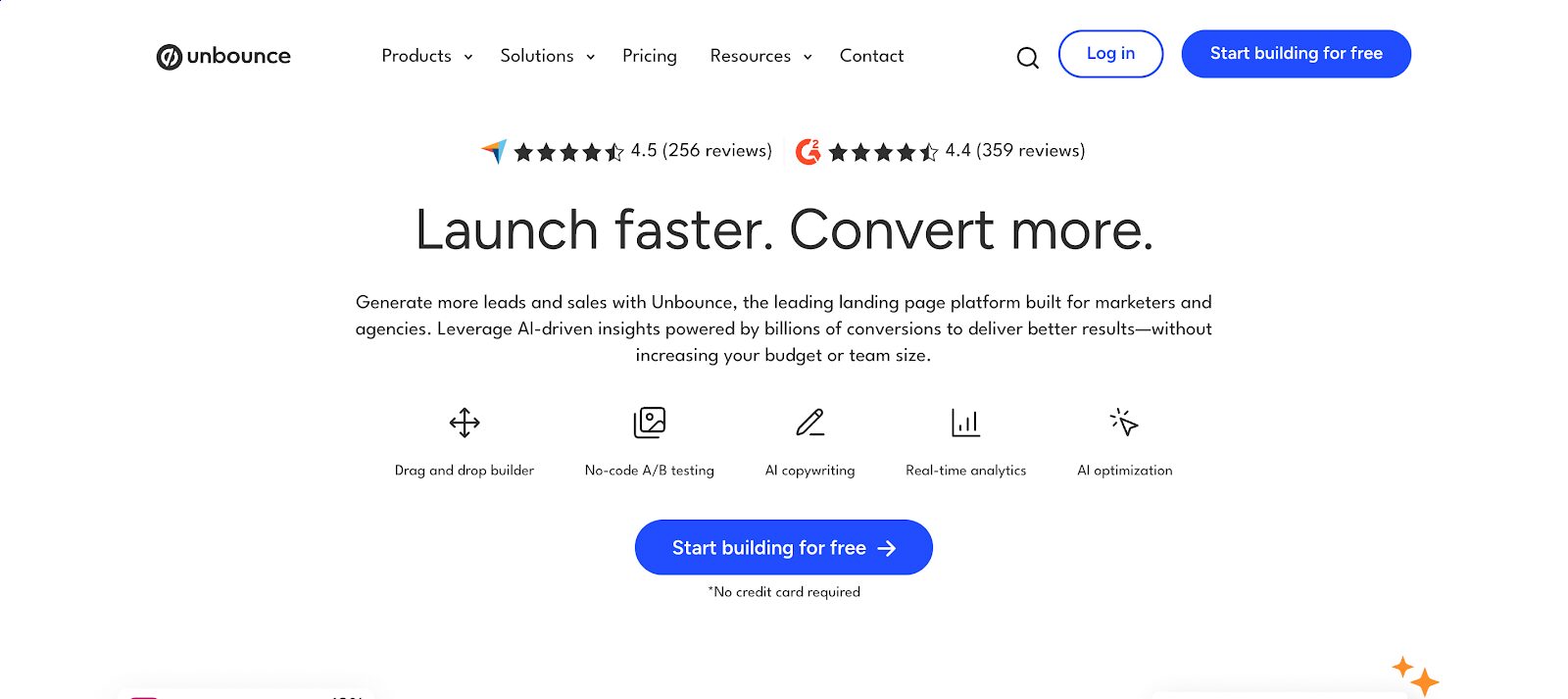 Unbounce is an easy-to-use platform for creating custom, high-converting landing pages without needing any coding skills.