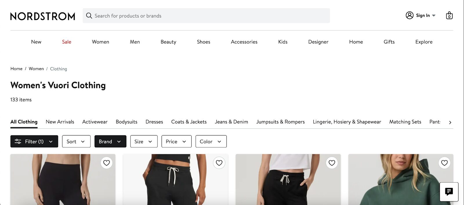 Additionally, Vuori targets product-specific keywords such as “women’s leggings” and “men’s joggers,” attracting traffic from customers looking for specific items.