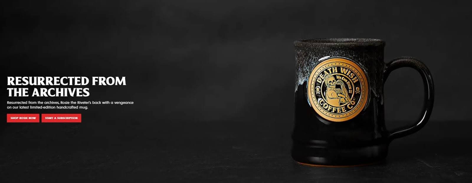 With the headline “Resurrected from the archives,” Death Wish Coffee doesn’t mince words. The bold, no-nonsense tone, paired with the striking imagery (skull logo and black packaging) directly communicates the product’s promise of strength and intensity, catering to coffee drinkers who want a powerful boost to their day.