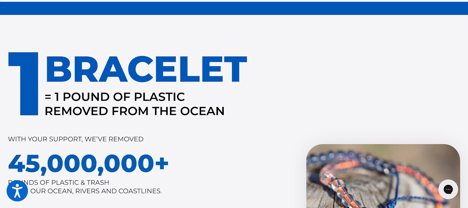4ocean combines mission and proof with “1 bracelet = 1 pound of plastic removed from the ocean.” This headline instantly communicates impact, making the purchase feel meaningful.